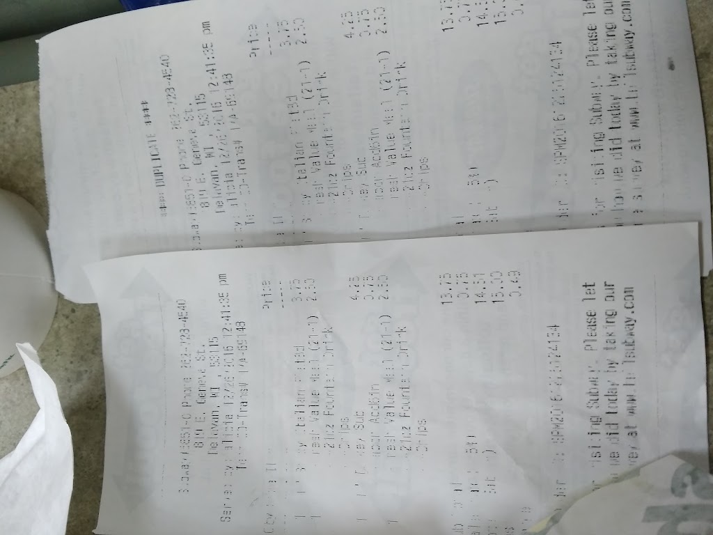 Prices seem different than any other subway. Normally I get a 12 inch sub. And Italian sandwich this time only got a 6 inch and still was same price as a 12 inch. Gave a reciept couldn't even read it..Asked for a better print out this is what I got. Also asked for different meat than on the menu for a kids meal they said no and then changed Thier mind and said yes. Asked if she could have flat bread and said no. Still didn't even get the kids meal or the toy..Even said I would pay extra for the flat bread.