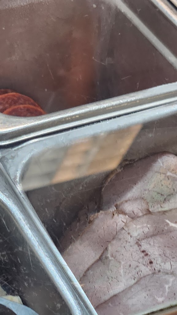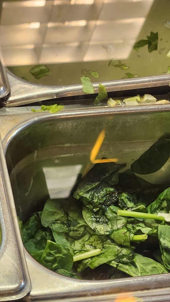 The meat is green, the spinach is mush, and the worker took eons just to make a simple sandwich!