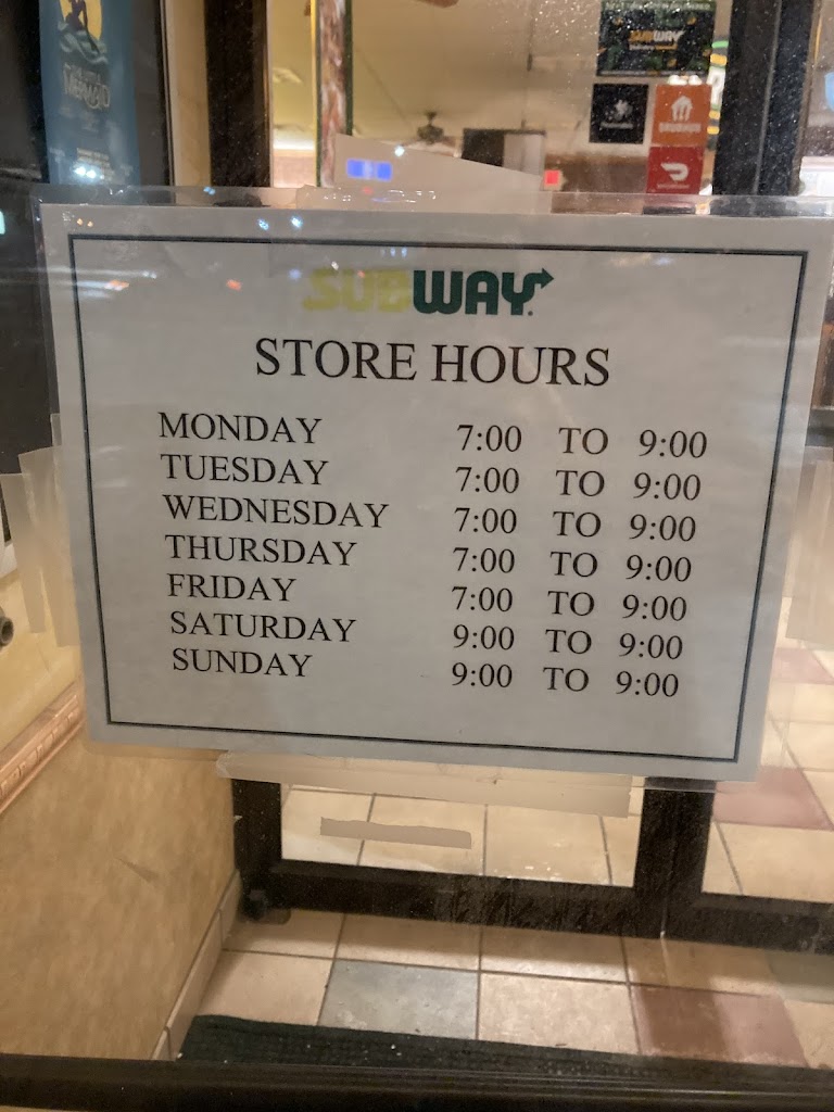 Closed before 7pm and, drive through wouldn’t even open the window to say anything…. I’ll be happy to send corporate once this review is replied to. 6:45pm and neither the lobby nor drive thru open…because she looked right at us, while sitting there playing on her phone and proceeded to sit down on the floor and text. Not a holiday folks nor a storm. Get off your phones and do your jobs.