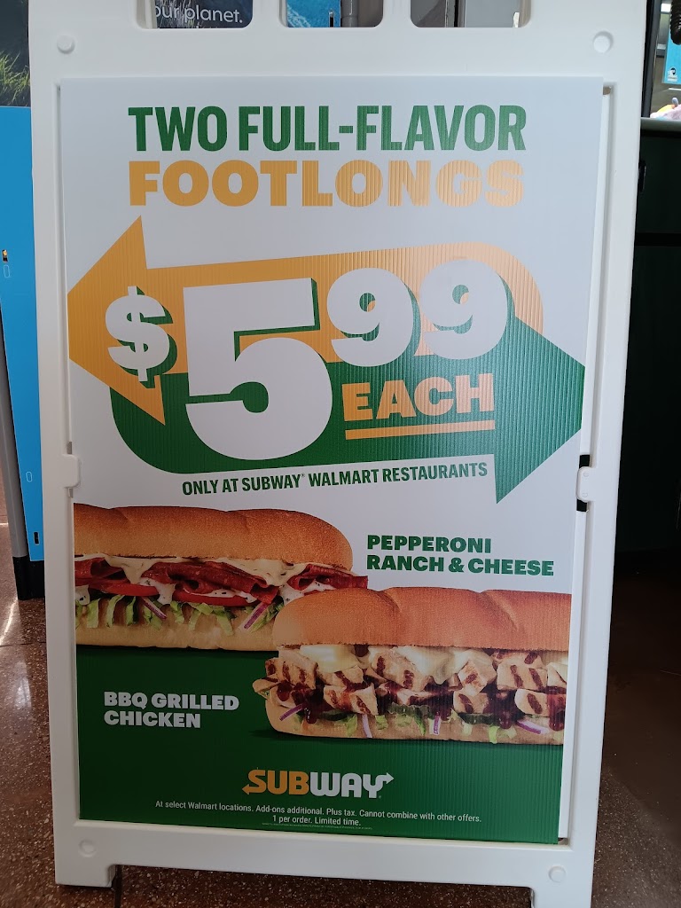 Nice to be able to grab a delicious Subway sub when leaving Wal-Mart