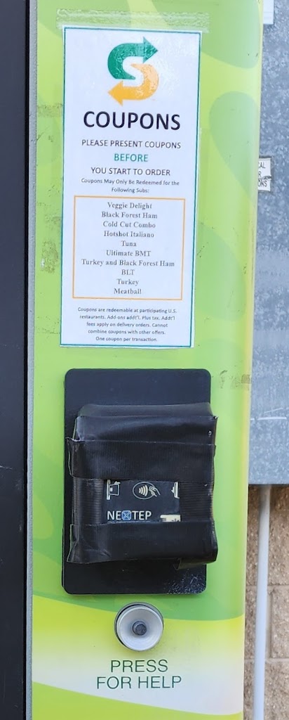 Freshness -10, service -20, atmosphere -10. Walked in and every table had crumbs on it. The time we went was not busy. Only one person ahead of us. Not a subway fan but family wanted a quick and easy bite. Personally, I would rather have gone to cozy coffee or Mike’s sandwiches. We had coupon with our order. We had planned to pay separately so we could each use our coupons since the manager had a harsh rule about combining them with each paid order. Regardless if there were multiple meals within that order. The lady saw all of come into together. She accepted one of the coupon and rejected the rest. She told us since we all are together, we cannot each use a coupon with our meals. Her tone of voice was not professional. We suggested to pay separately and refused to honor that idea. We didn’t want to waste anymore time arguing with this lady and left. If management continues to treat local loyal customers like this, they will go out of business down the road.