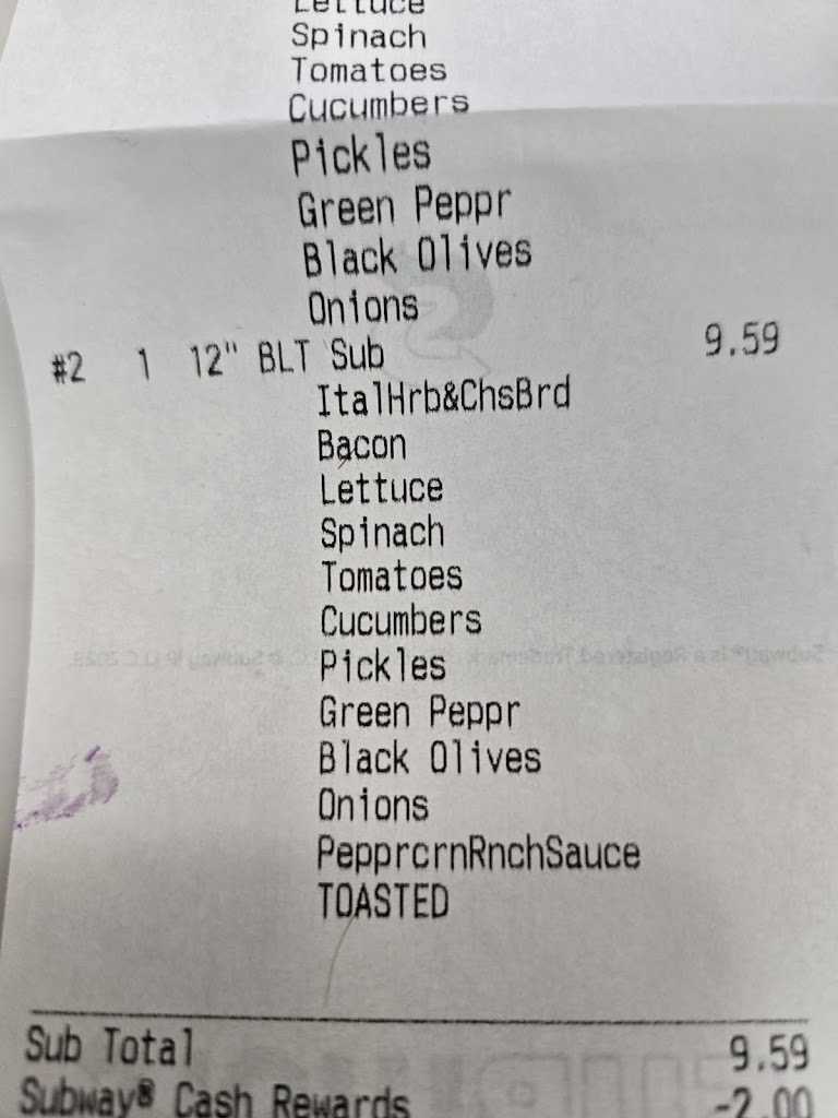 Stopped in one night at the last second. Tyler asked me more questions than I knew existed (but in a GREAT way!!) I genuinely felt like my order was important and cared about, as if he wanted to make it the best experience possible for me. Thank you to Tyler, and thank you to Subway for hiring such a conscientious employee!