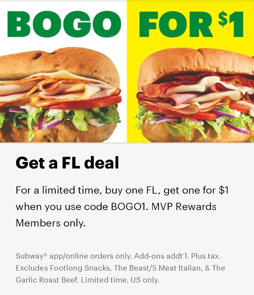 Incredibly rude. When you place order for the bogo offer, which the site shows they offer, they cancel your order. They also are not kind. Horrible subway representation. Be better.