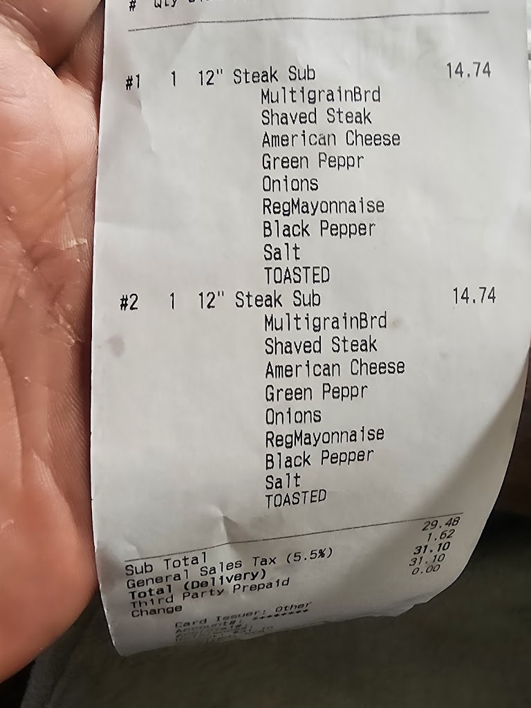 4. Handed the receipt at checkout but our sandwiches were not bagged. I had to reach behind the counter to get them.