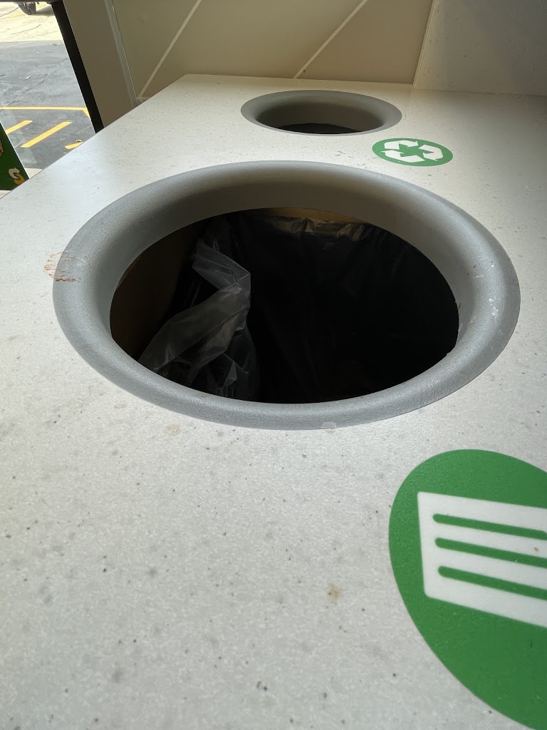 Subway does not care about the environment. Recycling and trash were the exact same bin, they’d rather destroy our planet than have to take out an extra waste bin. Disappointed but not surprised :(