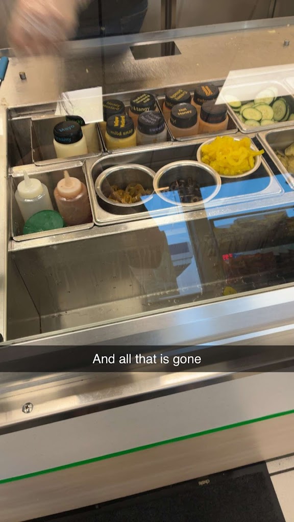 Condiments were mostly gone. Every bread was gone EXCEPT Italian herbs and cheese. The only cheese available was American cheese. The girl working at 8PM on 8/8/25 was extremely rude. We had more food than we could physically carry in one trip and the girl refused give us a bag. When the malw worker in back tried to come up and help she audibly screamed at him and berated him. I normally don't make negative reviews like this unless they're earned and this one was earned as it was the second time in a week that we've had this experience. We will not patronize this Sub-way as long as she's behind the counter.