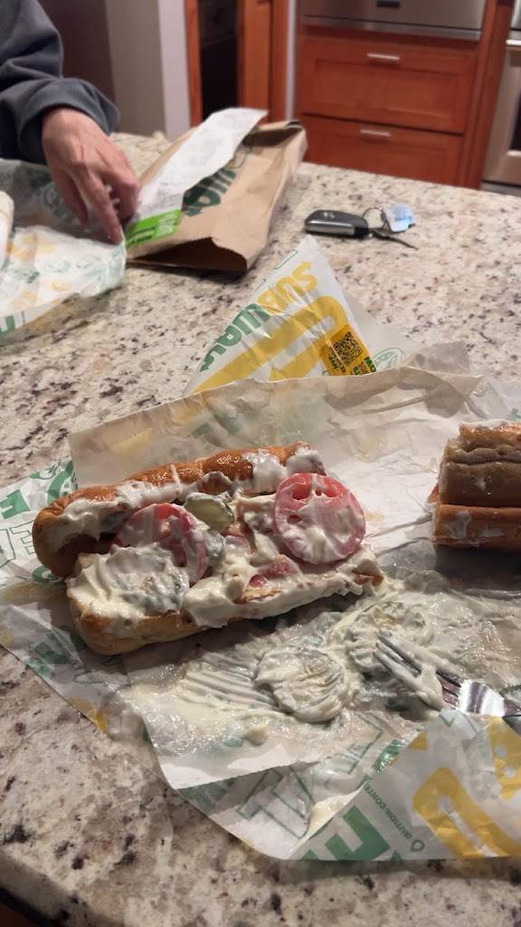 So, I walked into this subway on a cold evening tonight expecting a delicious sandwich and quality service but instead I got this! First I asked for NO olives and she put both types of olives, then she put TWO scoops of pickles instead of 1 small one. and she totally burnt my sandwich having both earbuds in and crap. Then this kind gentleman under the name xander corrected my order and was very respectful and kind he was very chill calm collected and I got his number and were going to eat out at Jake's on the lake in Lindstrom 10/10 go again for him tho 😉