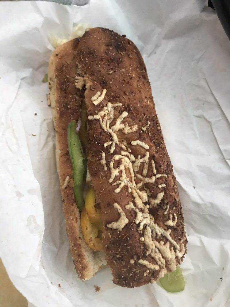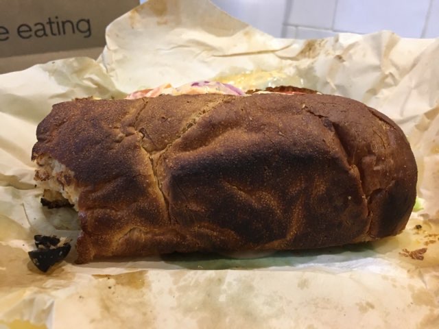 The bread was at best day old. Crumbly and hard is not what I would consider "eat fresh" but here we are. Thankfully I had a coupon so it was only bearly tolerable.