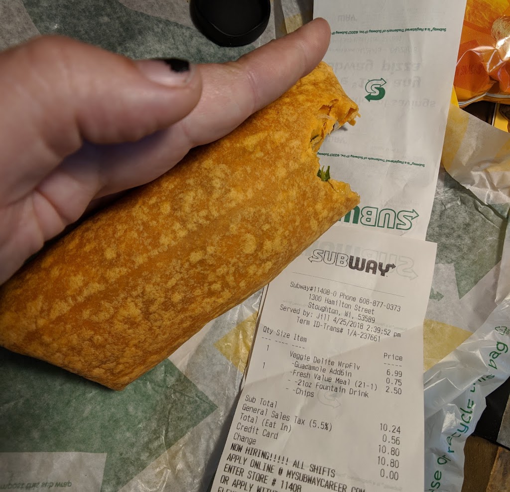I just paid $6.99 for a vegi 6inch wrap with guacamole...wow.