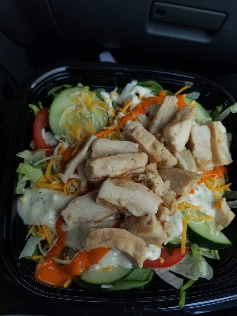 This is the first salad I've eaten from Subway. It was really good. I had the chicken breast heated up. I could have fit more vegetables. The price was a little higher than I expected. The sandwiches we bought were tasty as well. Overall we enjoyed it.