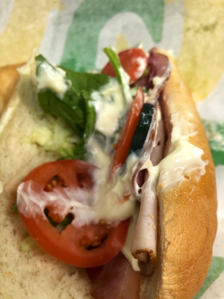 Hardly any meat on this turkey and ham not even sure if it was real ham or real turkey seemed very processed a lot of vegetables tons of lettuce very disappointing I won't be going back just any Subway