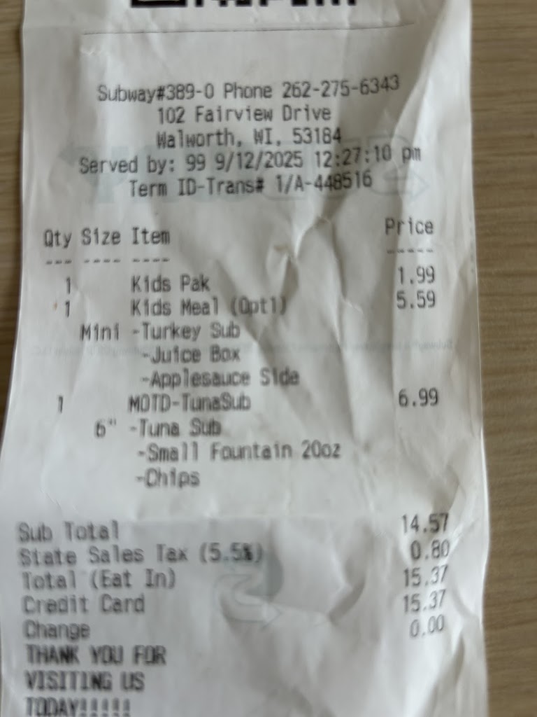 The crew at the Walworth Subway are very nice. Love the cookies!
