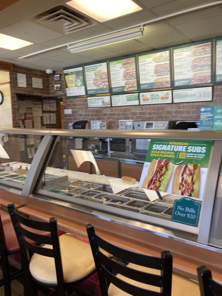 My friend and I went here for lunch recently and it was terrible. They covered the glass case so you could not see the meat and cheese and only see the vegetables. We both had very little meat on our sandwich only two slices and very little cheese. Meat was so thin it was like tissue paper. Freshness of vegetables was marginal. Our bread was half baked and was like eating raw dough . Do not recommend this subway they are ripping people off with their garbage .