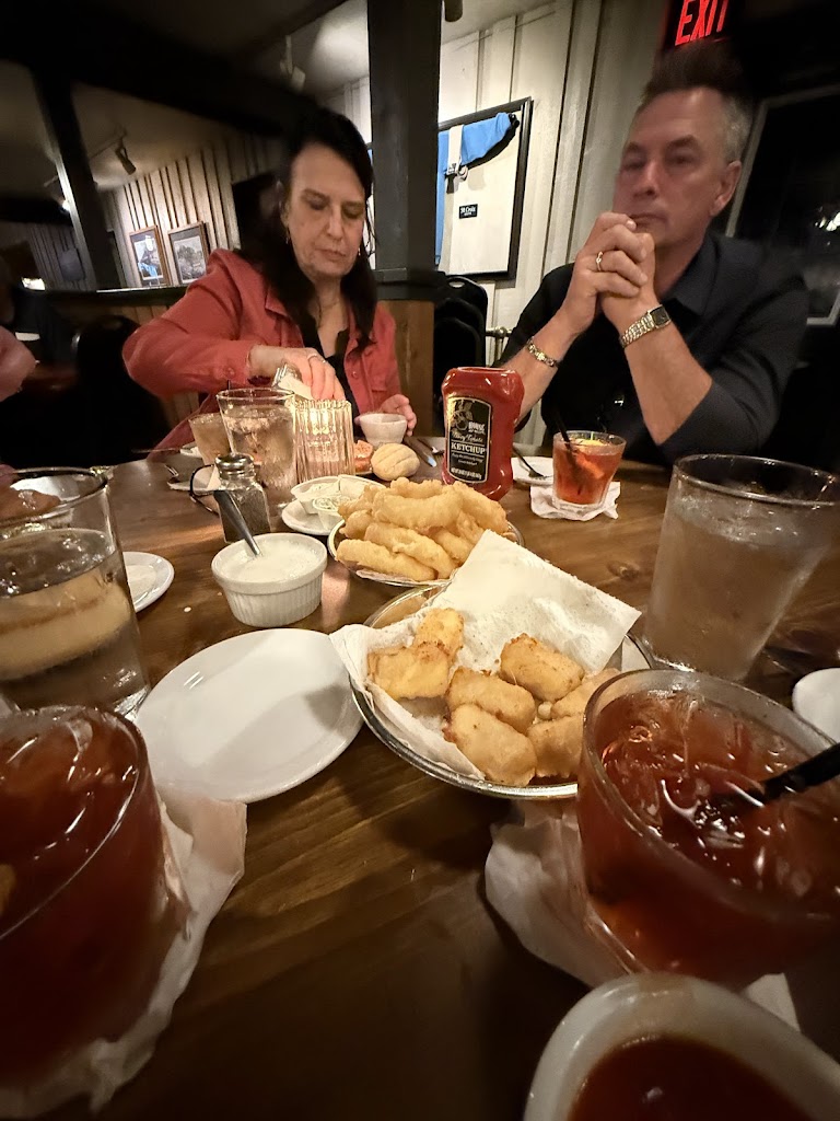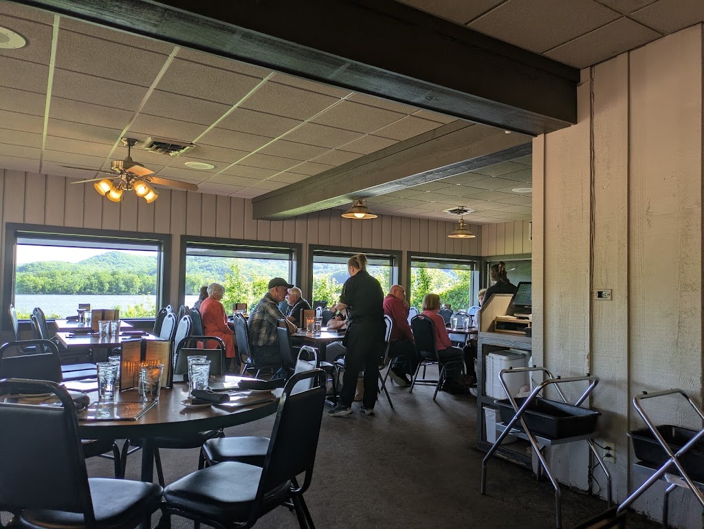 Our waitress was awesome. She had an excellent attitude. The scenery was beautiful. Got a nice view of the river. We had reservations so we got right in. They have a patio if you would like to sit outdoors and watch the river traffic go by. Nice view. Food is always great. They have a fresh salad bar. Enjoyed our night.