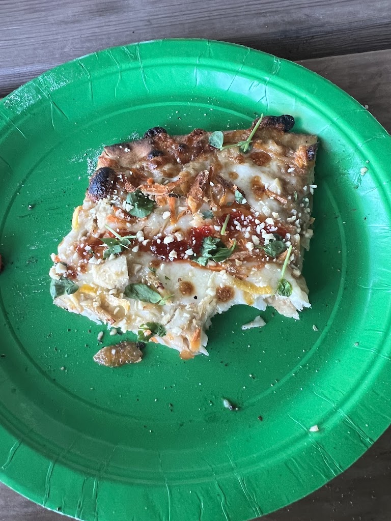 Pizza: think βfood truck brick oven pizza.β Very good, thin, crispy
