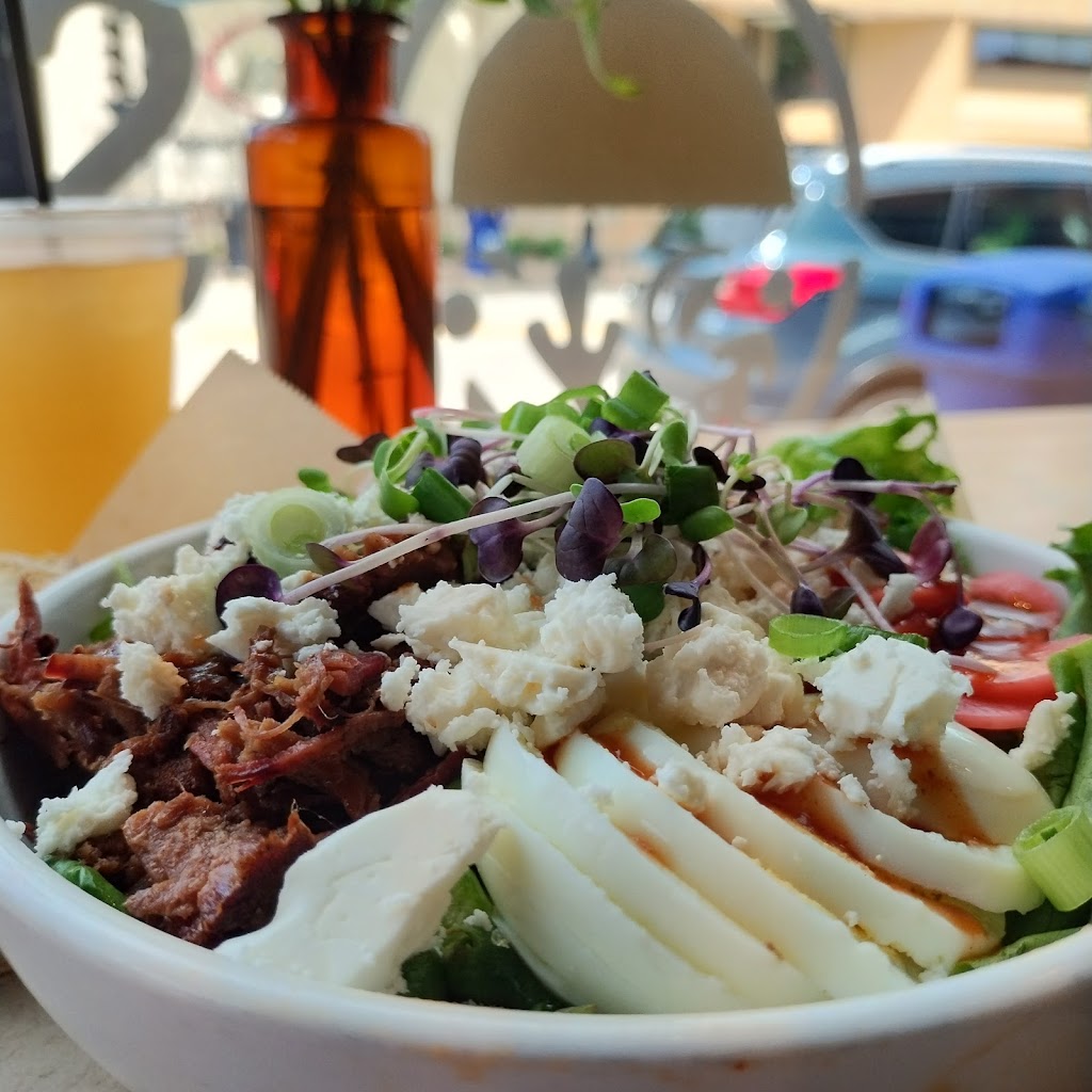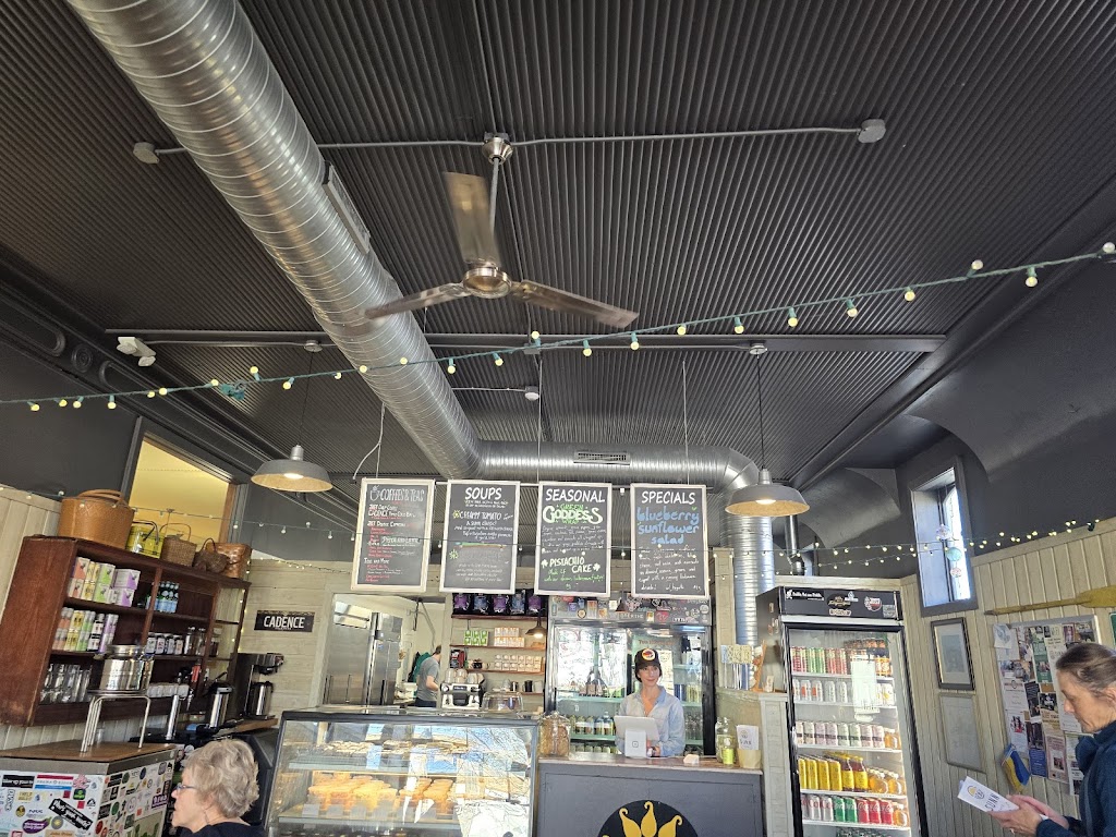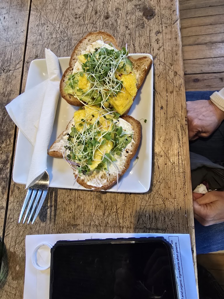 We really enjoyed the positive vibe at the cafe. The food was amazing. The freshest salad and tastiest homemade dressing I have ever eaten. Homemade dessert to die for! Very clean! Top quality every thing and the Owner’s and staff are gems! We definitely will be back!