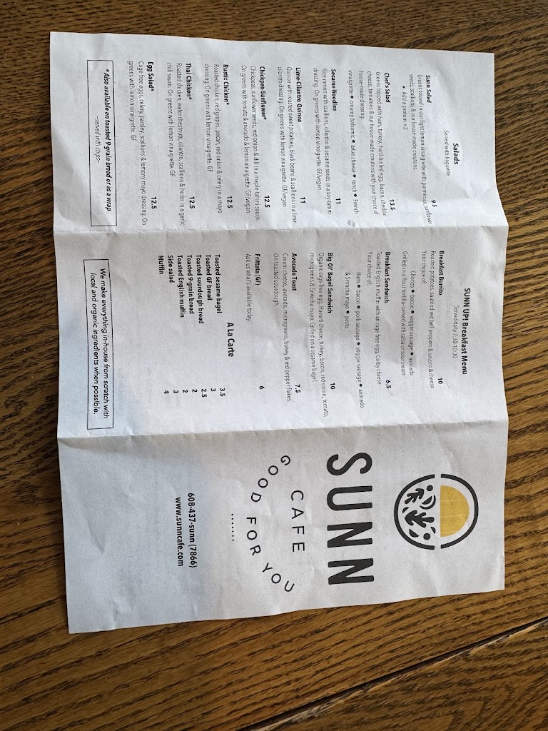 I LOVE Sunn Cafe! I could eat there every day and not get tired of the fresh, delicious food. Their customers service is also always so wonderful. Every town needs a Sunn Cafe!