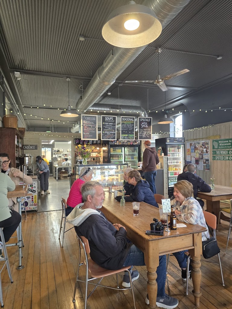 Fantastic fresh food. Deli containers full of the salads they offer plus a larger salad with greens offered today. The soup tomato looked absolutely delicious. I love that they offer vegan dishes especially in an area where cheese is what wisconsin is about!. The sesame noodles are very flavorful and fresh. The quinoa salad is very tasty as well. In town off the main street. Go past the immediate picks off the highway and don't miss this little gem. Prices are very reasonable.