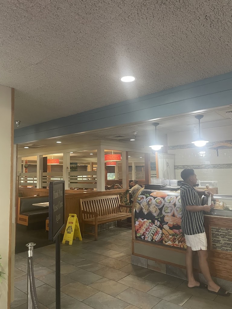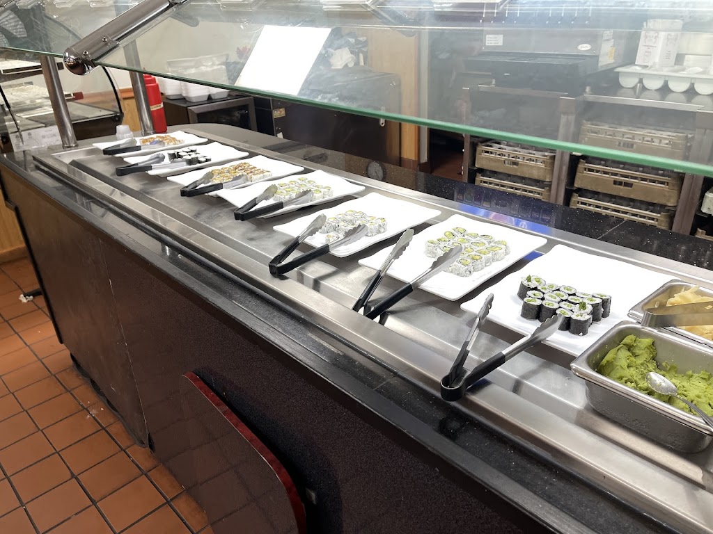 Before walking in worker was smoking at the door. Restaurant entrance was dirty. Sushi area was dingy. Got token to the middle section by the food and there is small sushi area nugget and fry area, salad bar was filthy, 2 food lanes, everything was cold, only take out food if large amounts of people came, Which they where. I think they hold the food too long so when they put it out it’s old. Think its owners request to do that. The quality was bad. Some stuff wasn’t too bad. The shrimp is what I had, noodles, and sushi, and crab Rangoon’s. But again they have to hold the food in the back unless people come. We all got the runs after. For a party of 5 we paid $140 drinks and 2 beers. We were looking for sushi.