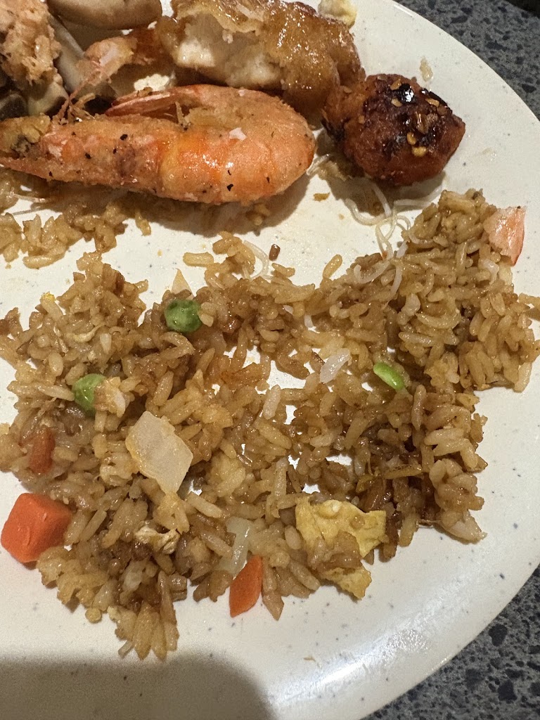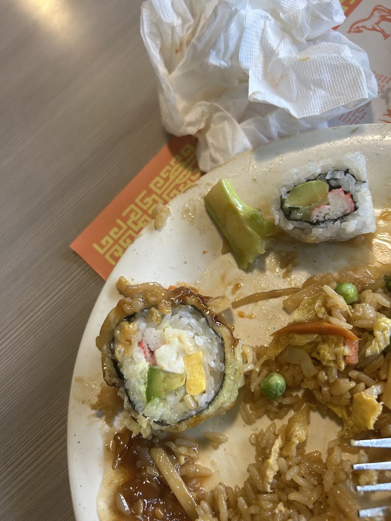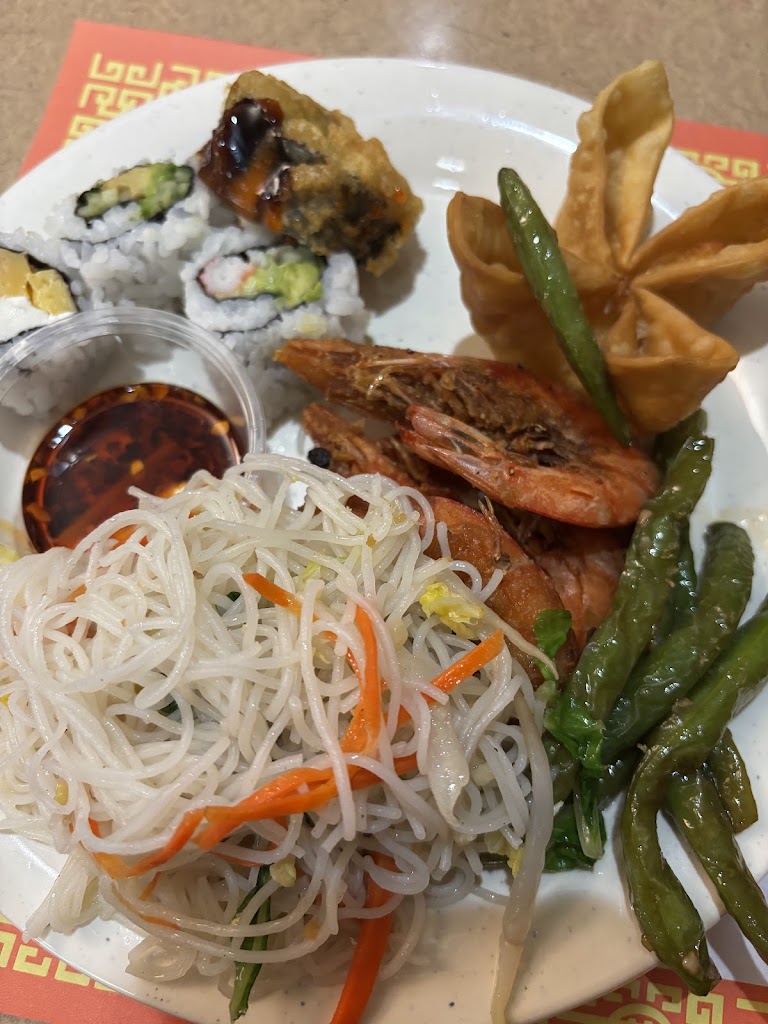 Le voy a dar 4 estrellas porque el señor me hizo reír un montón… haciendo chistes con mi cuñado es muy bueno 😂 y a la verdad que nos atendió muy bien. Eso si tengo q ser honesta la comida puede mejorar!!! A la carne de cerdo pienso que le agregan tofu y a no todo el mundo le gusta el tofu… Los camarones 🦐 estaban muy buenos. No probé el arroz pero mi esposo dijo q estaba muy buenos. El pollo estaba muy tostado q realmente estaba reseco y no se podía comer. Y yo fui por los Suchi y realmente no me gustaron. Si mejoran la comida van a tener más clientes y cuando un cliente va a comer a un bufet si la comida está buena no importa el precio que se pague porque disfruto de una buena comida… en fin esta foto es de mi plato y no me comí todos los Suchi pero lo demás si.