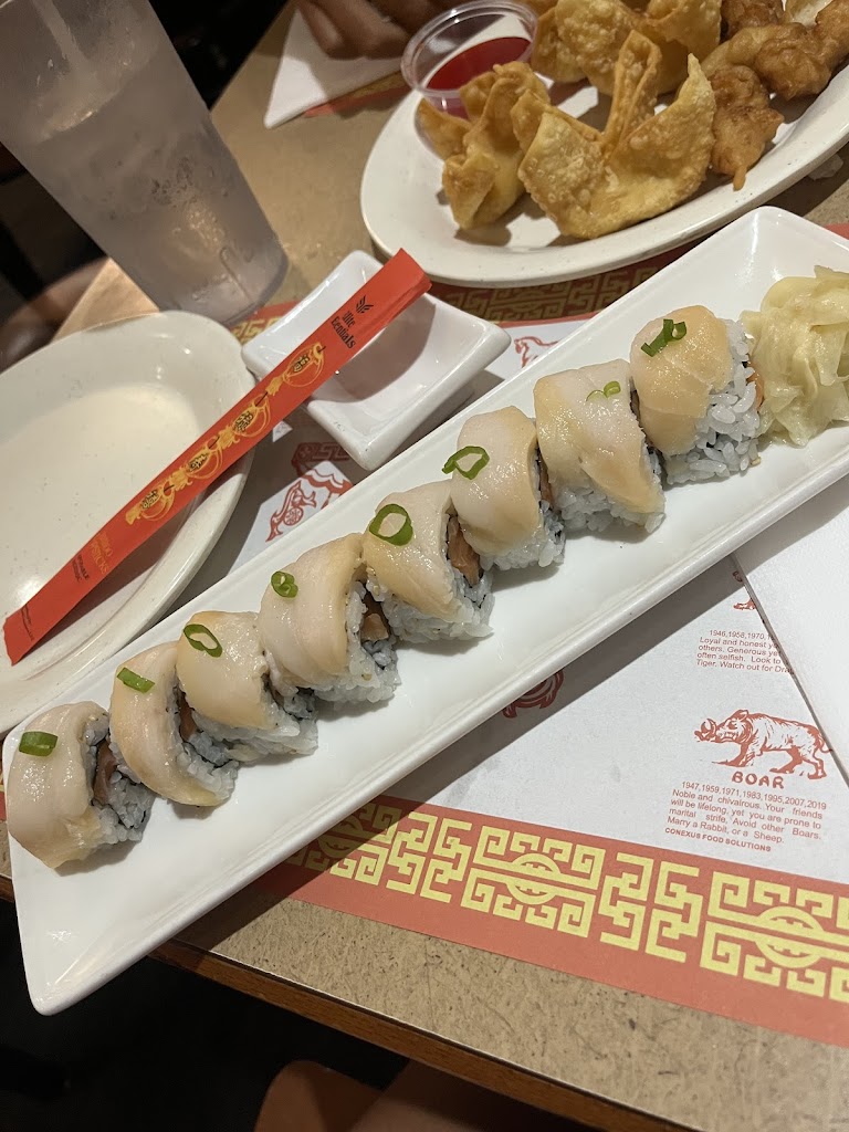 Chicken was dry, fried scallop and crab craws were amazing, ice cream was a 10/10 the food was cold, the atmosphere was hot, the service was amazing friendly staff, good sushi