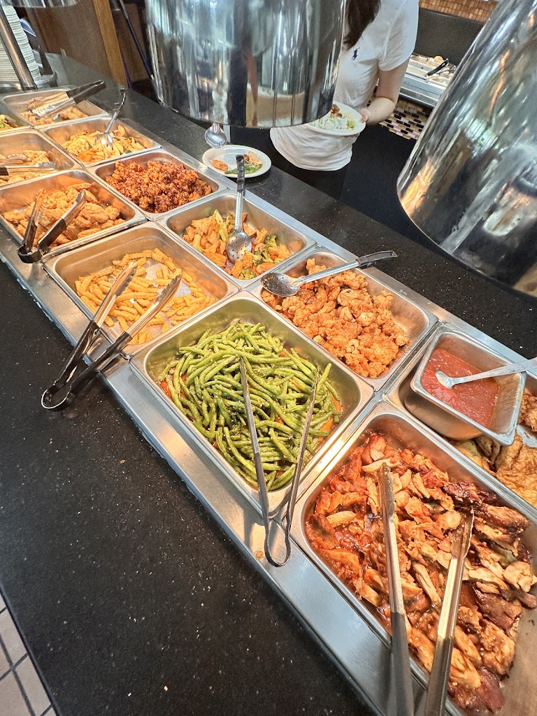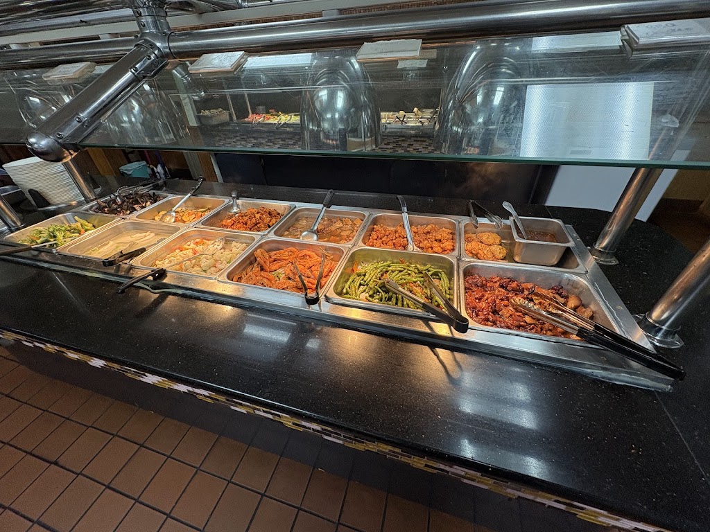 Came on a Sunday night at 6pm. Very light crowd. I must start this review by saying that I am somewhat of a Chinese buffet connoisseur. I love Chinese buffet. I go to a Chinese buffet in every town I’m in, and everywhere I visit so I literally am somewhat of an expert on what Chinese buffet should be. For the price of $20 an adult, the food was very underwhelming. Standard four island options one typical Jell-O dessert options one of them being a small sushi option. Eight of the 24 options in the two remaining islands, were not even Chinese food. Eggrolls and chicken nuggets were not even on the island, but rather in a warming case similar to something you’d find in a McDonald’s and then as expected everything in the case was very dried out.