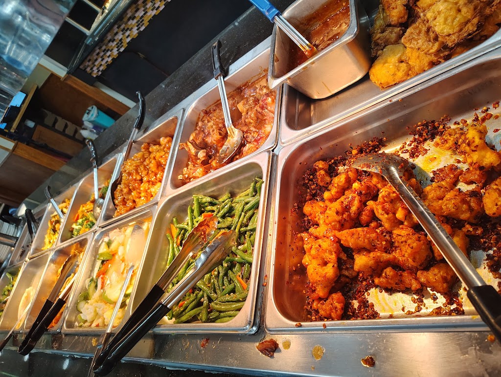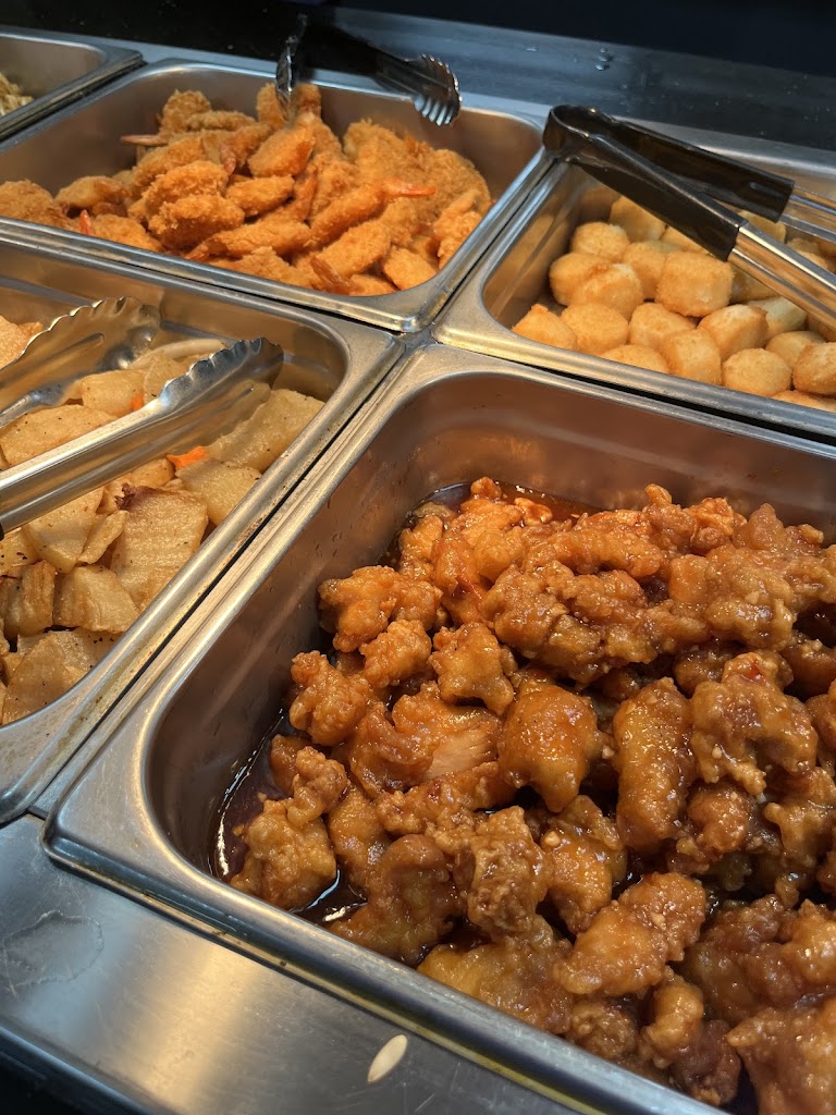 All-you-can-eat buffet with a large selection of Chinese dishes, plus sushi, in a casual setting.