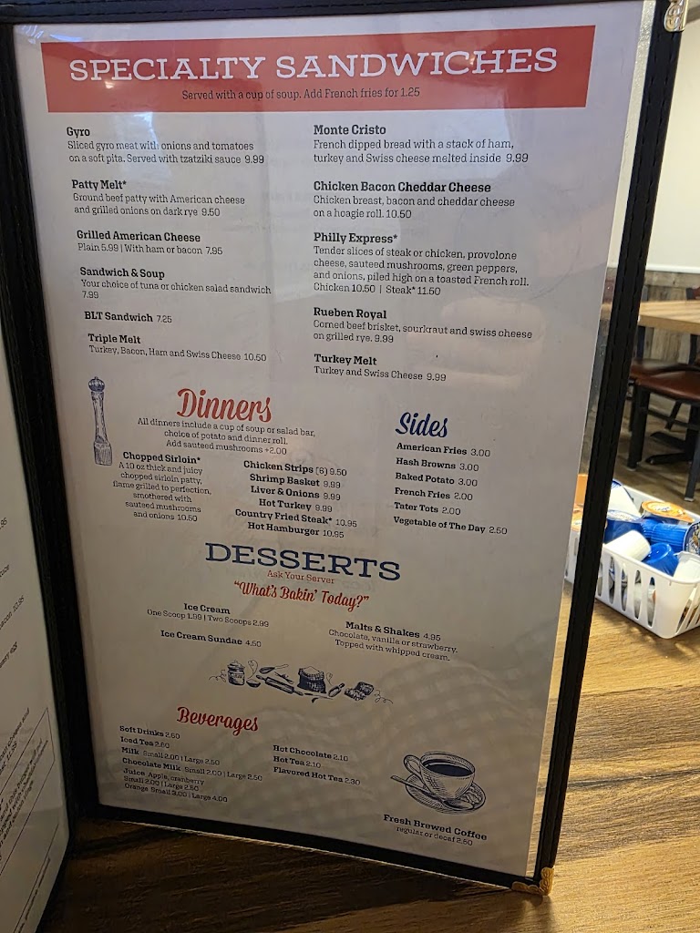 Everything is Bright and Beautiful. Excellent service. Went for lunch and got the REAL Steak sandwitch w soup and fries for 13.95!!!