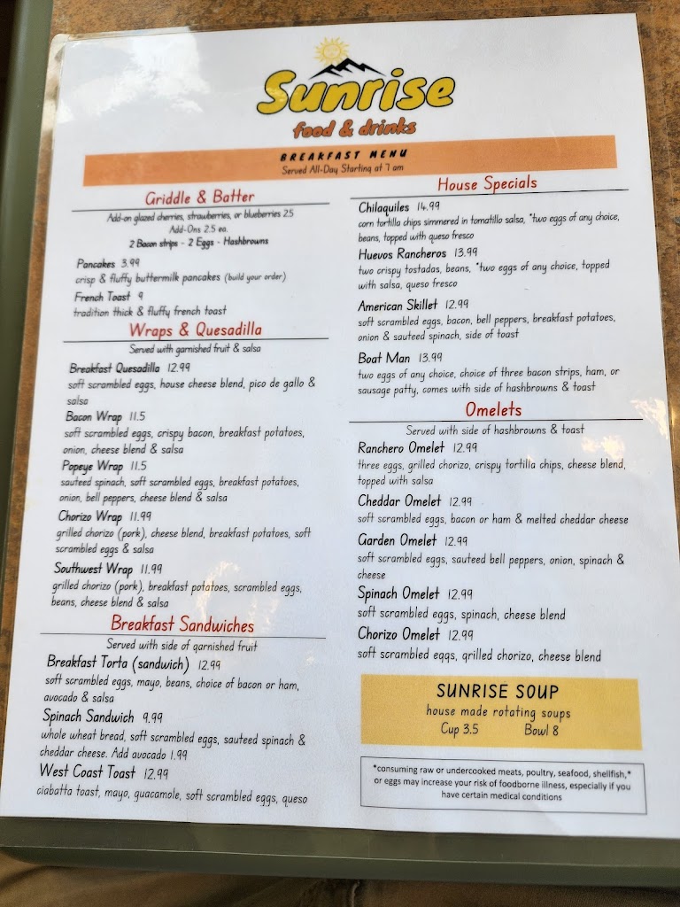 Highly recommend!! The cleanest restaurant I’ve been in.. no greasy smell, no greasy floor, very friendly workers. The food we had was very good! Bacon wrap was very tasteful and big. You can get regular breakfast plate without the Spanish/mexican adds.