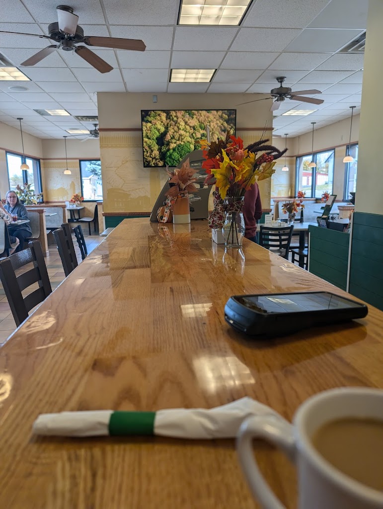 Food was perfectly prepared, staff was friendly and it was a very clean atmosphere. It was the first time going here for my mom and I and her word for word was, "I could not of gotten a more perfect order of hash browns and even the coffee is amazing". We eill definitely be back! thanks for a great breakfast.