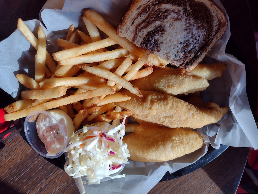 Fantastic pan-fried perch, and the warm german potato salad was amazing. We really loved our meals here. Friendly staff, a nice water view from the deck- we definitely recommend this place for a summer sunset dinner.