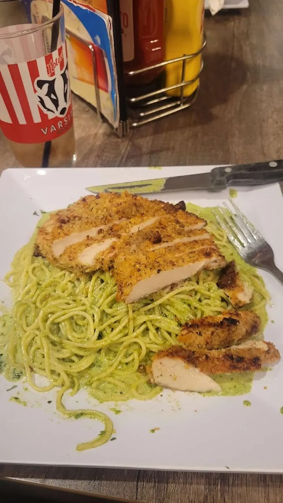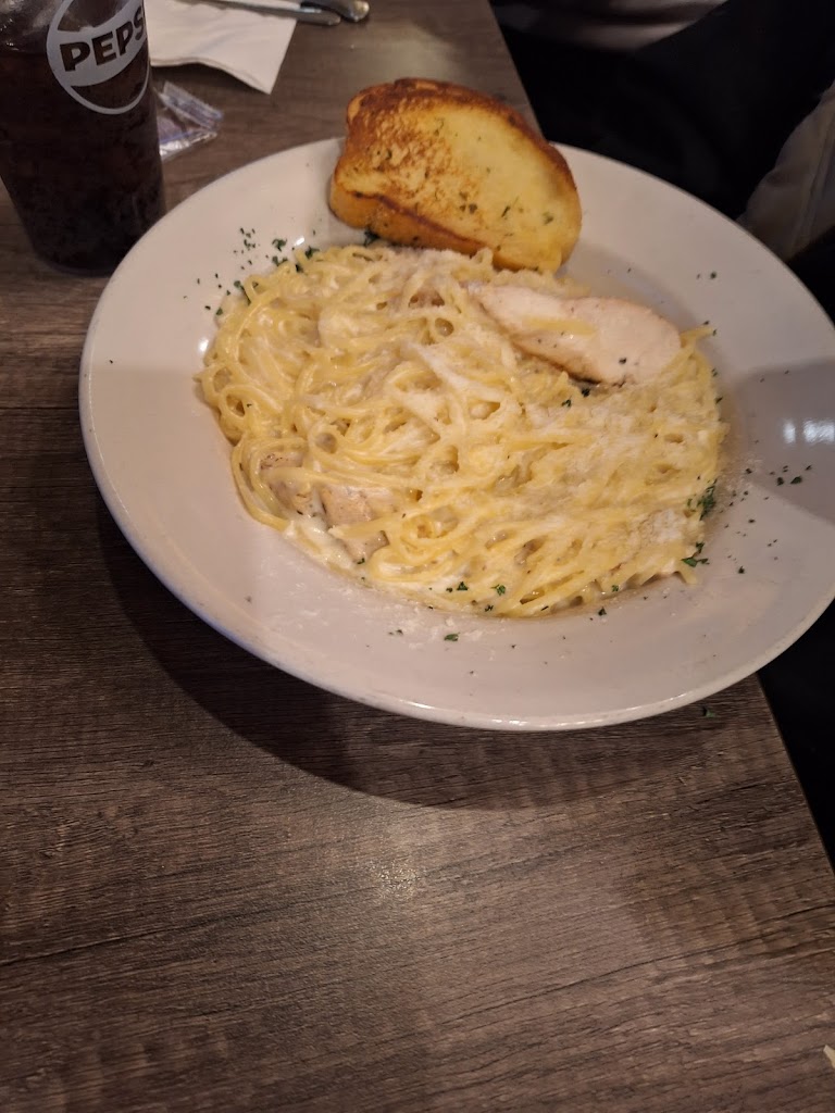 We stopped here for a late lunch yesterday and it was not a good experience. First, I was given a Mt. Dew with a bug floating in the glass. the french onion soup was just horrible. Worst we ever had, I had the Works burger, it was ok, but very greasy and the fries tasted old. Daughter had chicken alfredo, she said hers was good. The atmosphere in the dining room was terrible. Dirty looking ceiling, chipped paint on the walls, light bulbs hanging out of the sockets from the ceiling, cobwebs on window ledges, food on the floor. There was only one other table being served at the time besides us, so they had plenty of time to clean the floor up at least. We'll spend our money elsewhere and will not be back.