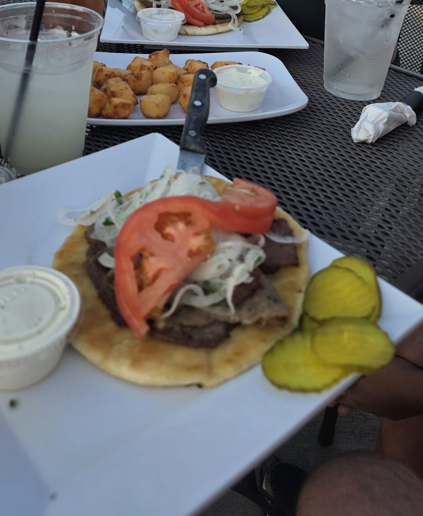 Food is amazing! I had a gyro and my husband had an appetizer sampler. Absolutely delicious. Drinks were very good as well. Service and staff were outstanding and the view is breathtaking especially when the sun is setting. We will definitely be going back again and would 100% recommend hands down!