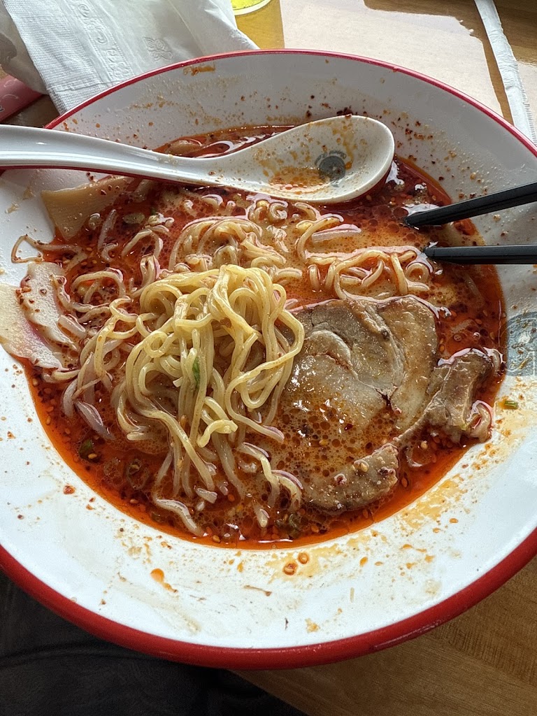 Very tasty ramen! This is one of the only ramen shops in the twin ports to actually serve spicy ramen (I requested double spicy). It tastes and smells like the typical tan-tan ramen, except there is no numbing sensation you would normally get from eating peppers.