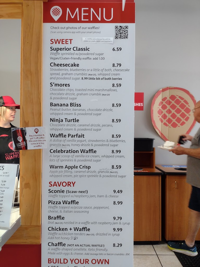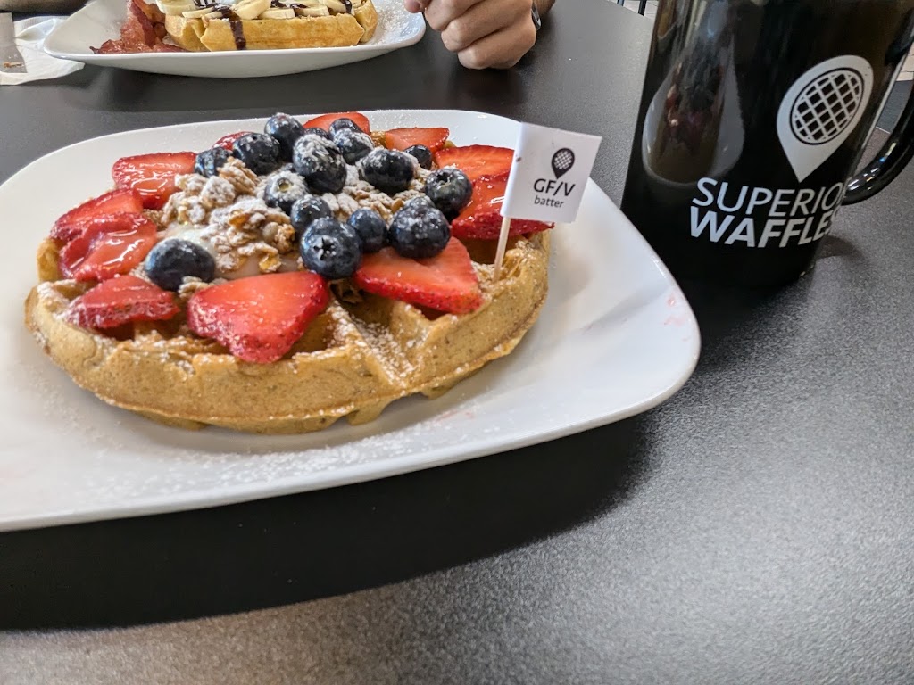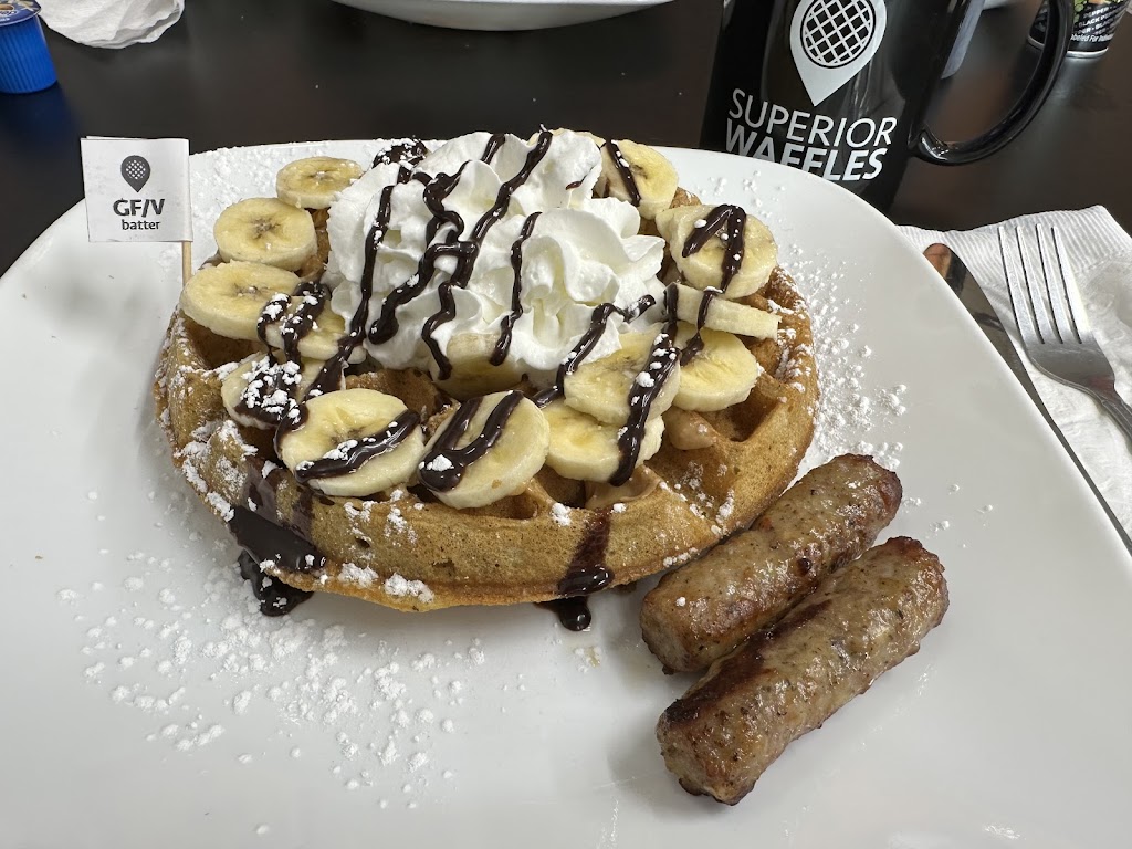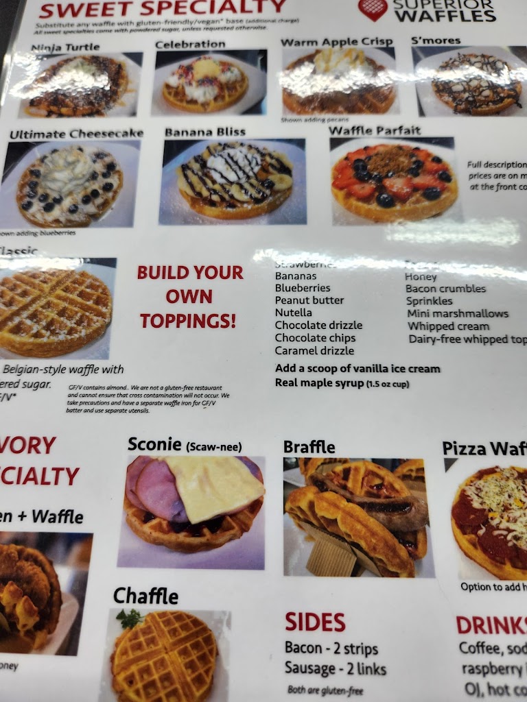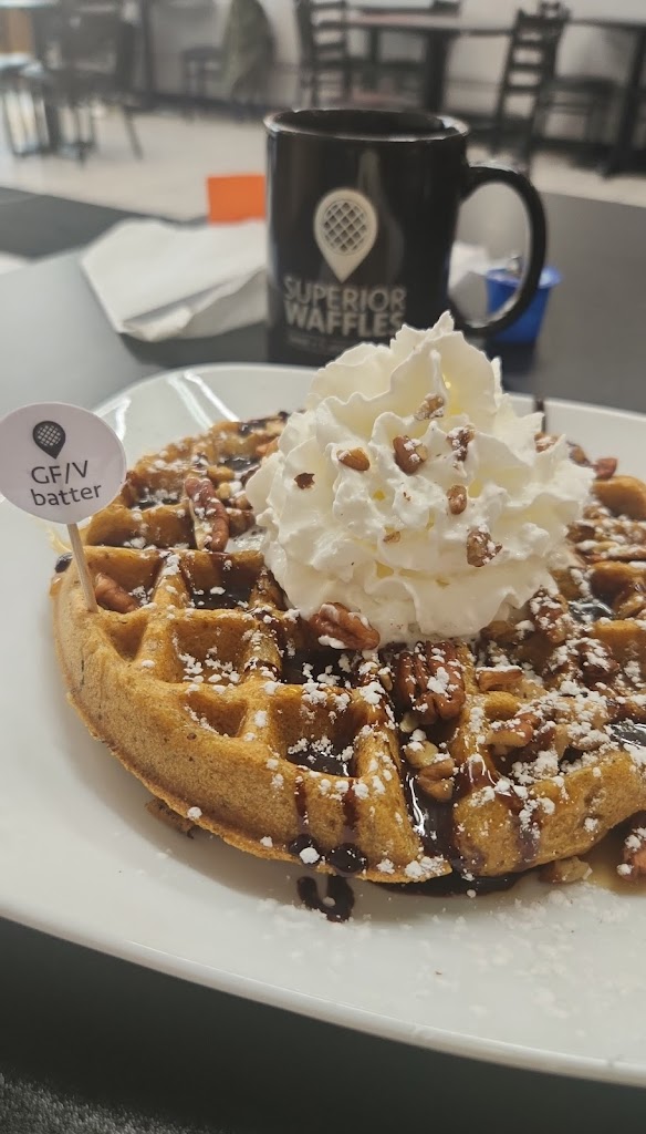 The staff was attentive and answered questions, they have a clean, open and modern dining area, and the best part is that in an area where there are not a lot of allergy conscious restaurants they have gluten free and vegan options! Good job Superior Waffles!