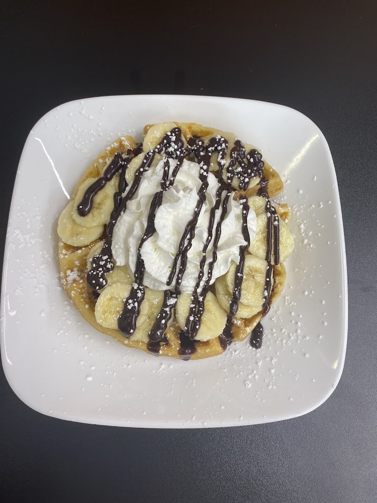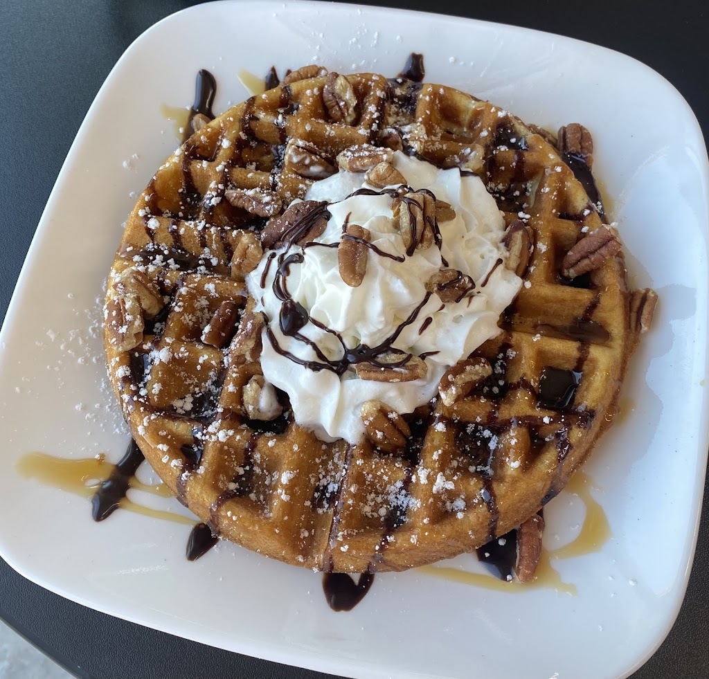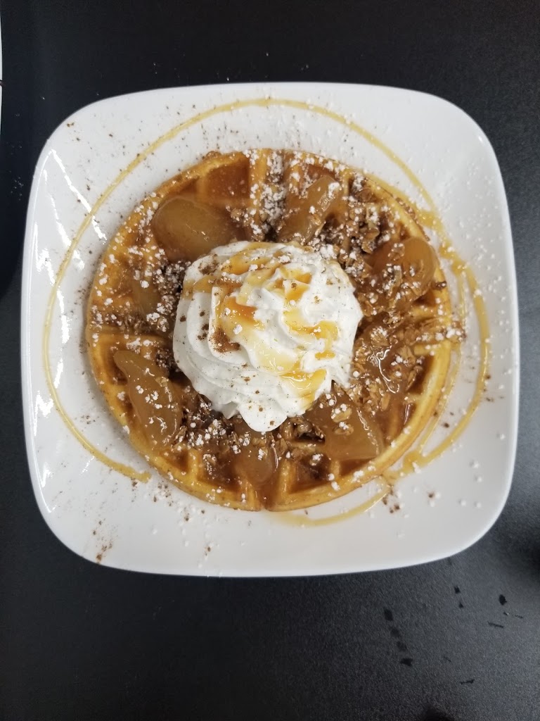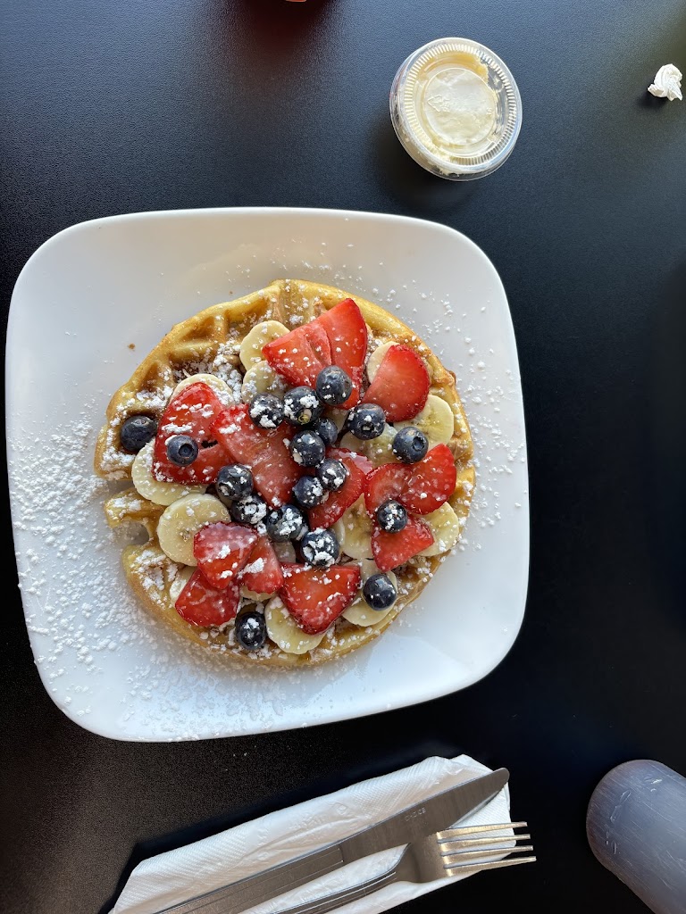 Variety of waffle choices, good coffee, service is excellent. Sunny indoor and outdoor seating. I love the front window tables. Relaxing atmosphere. Promotes local artists.