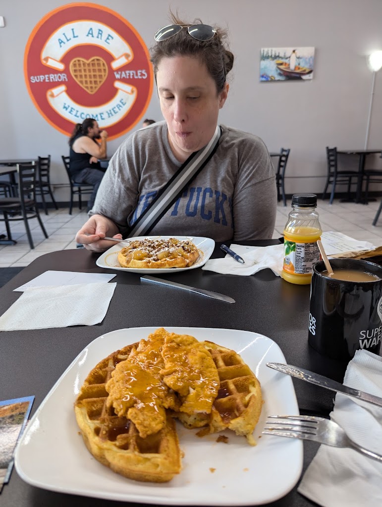 1st time here, definitely not the last. The waffle was fluffy and delicious. Meats are a perfect balance. Can't wait to try them all 😛 Chicken and waffle was amazing. My buddy had ham & cheese with raspberry jam. They got savory & sweet on lock here at Superior 🧇