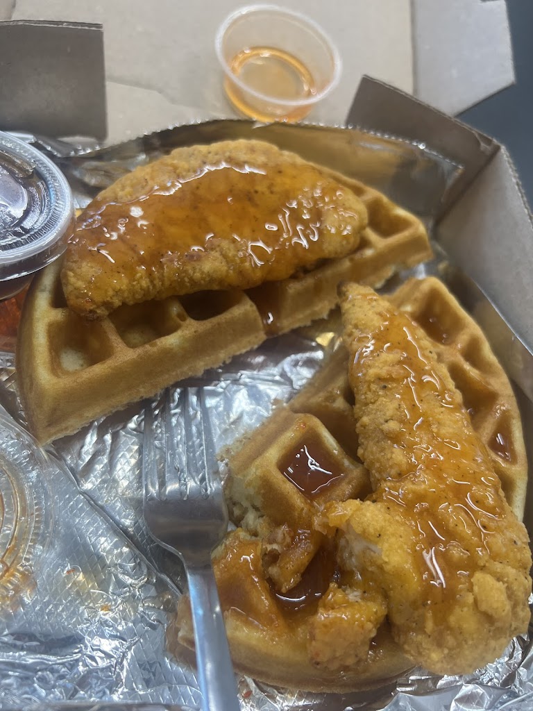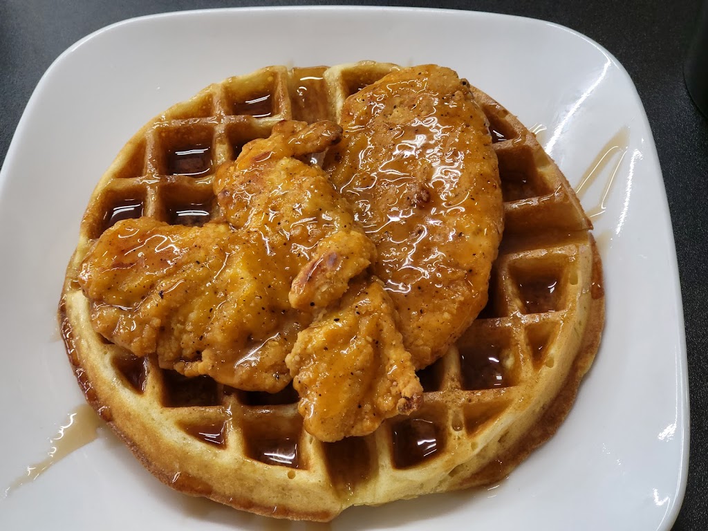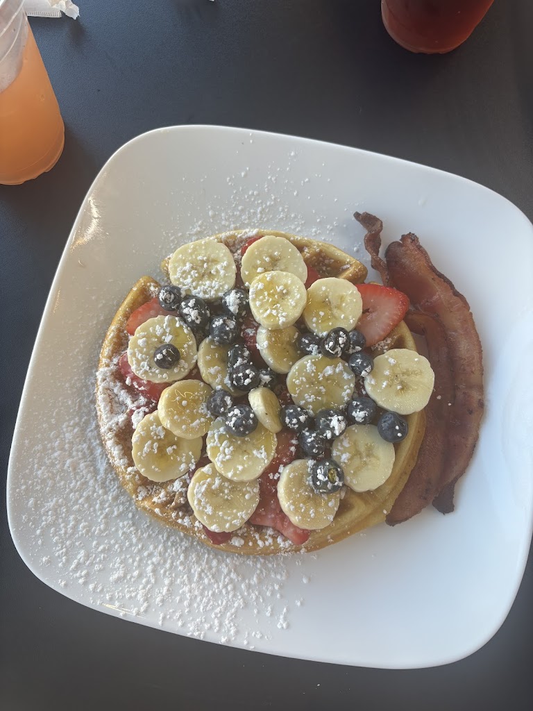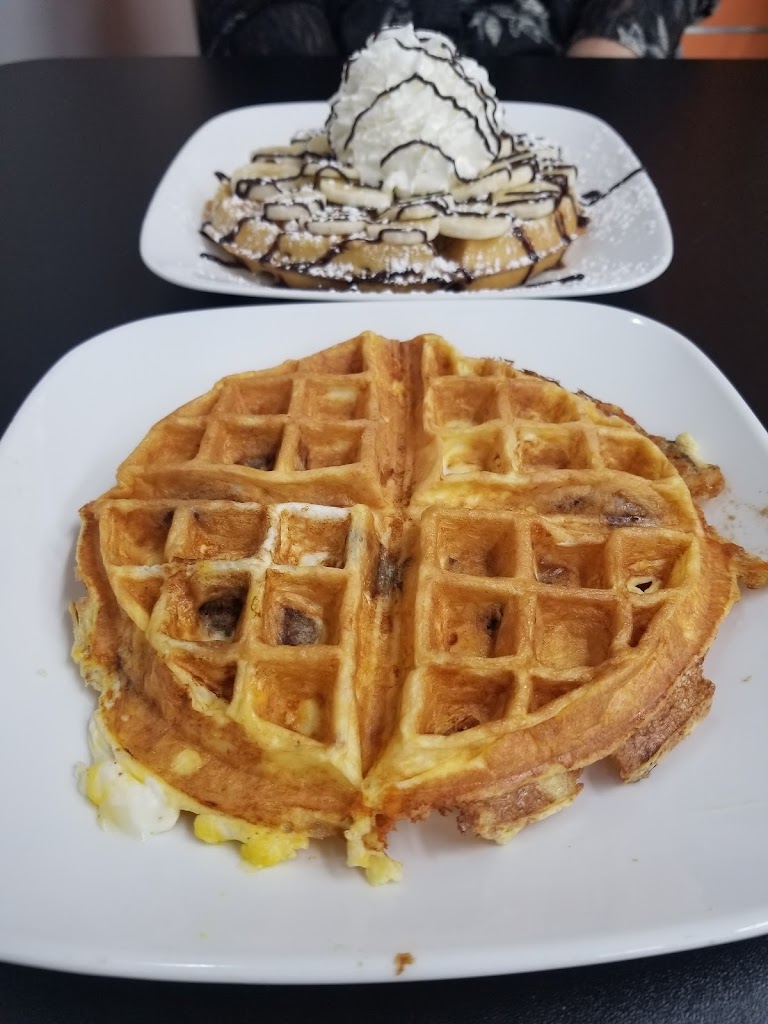 We got the chicken and waffle as well as the strawberry cheesecake waffle (I added banana and it was the way to go). Staff was friendly, they give you coffee refills. If you’re really hungry order two waffles just for you. The side of bacon wasn’t worth the money as you only get two strips, and they’re small pieces. If you’re a Park and Rec fan you’ll appreciate the wall art in the bathroom. Highly recommend!