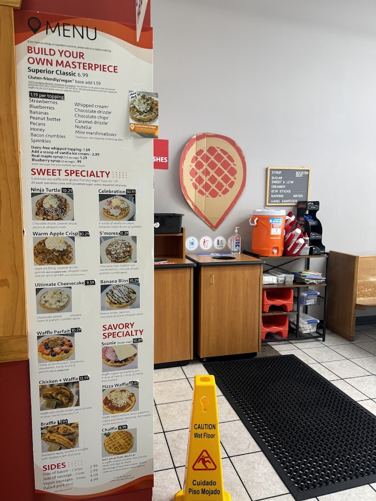 Cute waffle bar tucked away in Superior. Lots of activities for kids. Our door games and patio. Pet friendly as well! They also offer indoor seating as well. Clean establishment and friendly staff. Thank you Superior Waffle House.