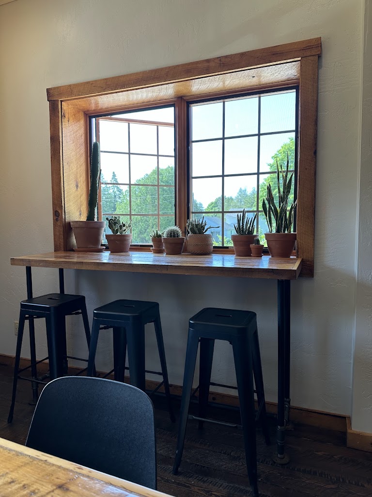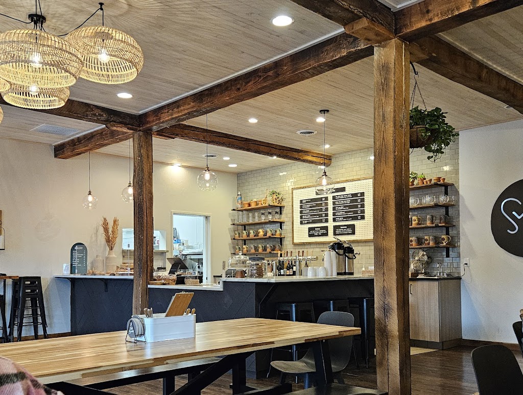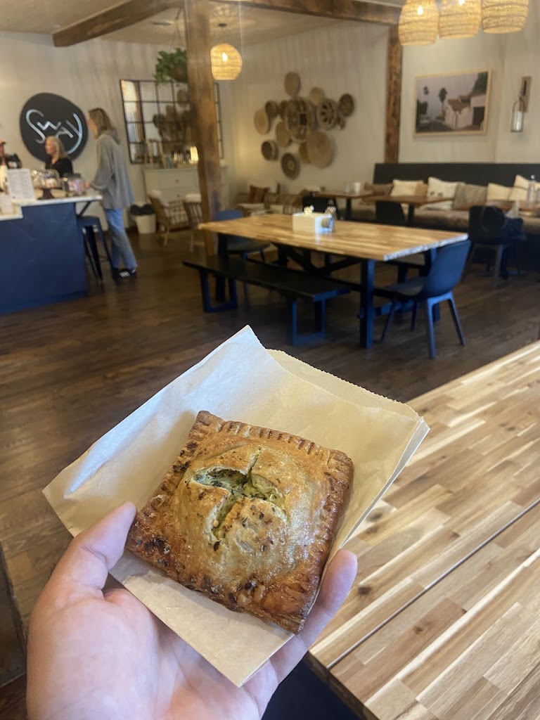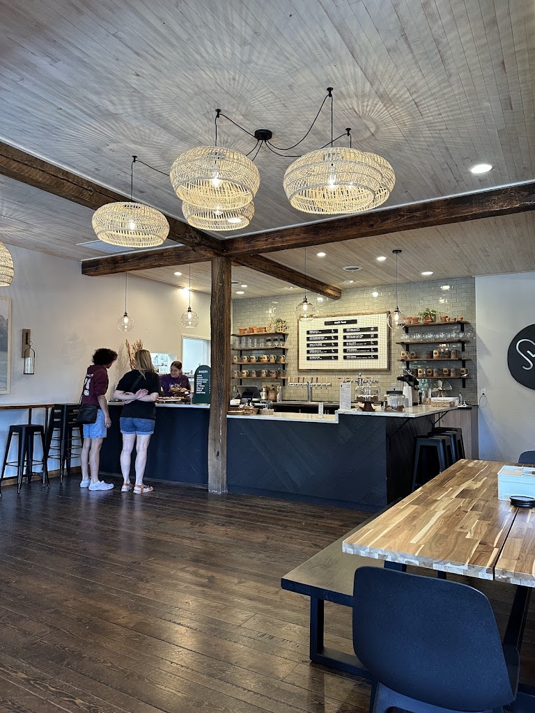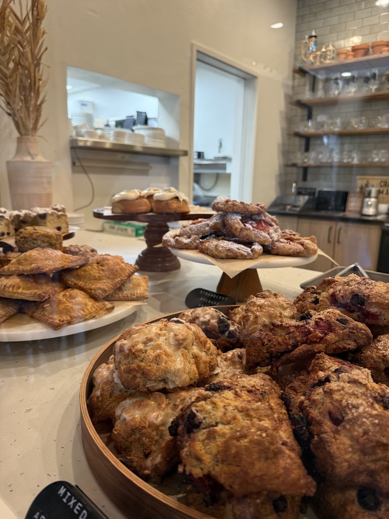 Beautiful space! Delicious breakfast scones and quiche, along with a yummy maple oat milk latte:)