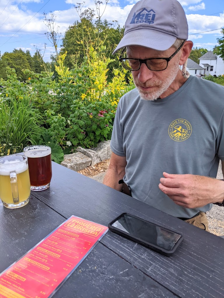 Excellent beers, good food. Thank goodness there's still a place to go that hasn't yet "hopped" (sorry) on to the "all IPAs all the time" bandwagon. I had their Mexican Lager and a dark Lager that were smooth and tasty. Their food is Mexican-based (not Tex-Mex!) and ranges from mild to medium spicy. My wife had pork tacos and I had a bread and pork dish with a spicy enchilada sauce that was very good. We will be back wherever we're up in the area.