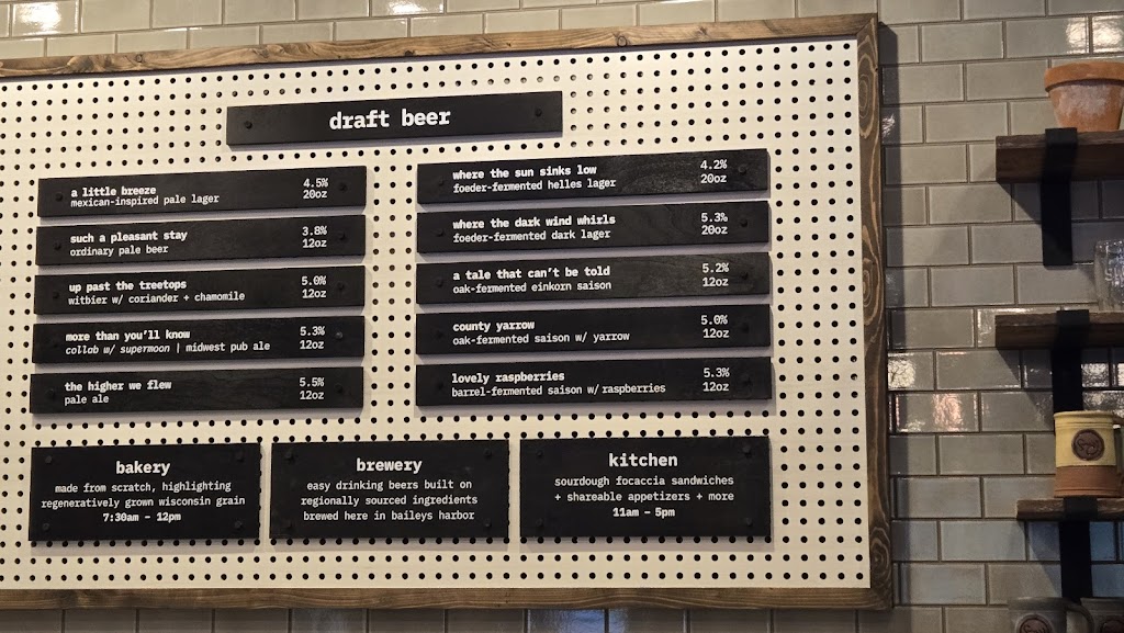 I had six beers here. They were phenomenal. Not just by Door County standards, but when compared to all other breweries in WI I’d put this brewery in the top three easily. He has mastered the saison. The ability to hone in one’s taste buds to the essence of the oak barrels paired with whatever fruit or adjunct ingredient these beers are infused with is second to none. I will be back.