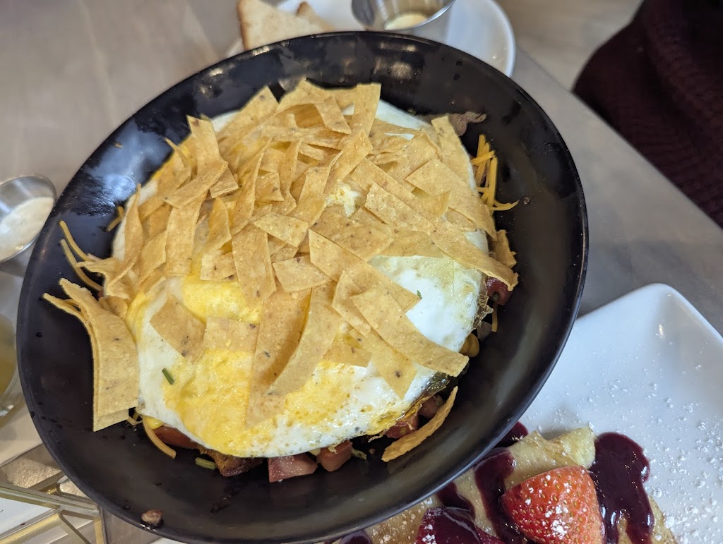 The people in the front and what looked like a manager were so mean! So a member of our party got there before us and said there would be 8 people. They told her to wait for the whole party first. Ok great. We arrived as the other half of the party and went up to get seated as directed by the host. We line up (all 7 of us as 1 person did not come as expected) we say ok we are all here. The rude host said you need to wait until they are all here. We point to us 7 people and say they are here. He says 8? There is 7. We say, no it’s 7. He repeats you all have to be up here. We repeat. We are, it’s 7 not 8, someone didn’t make it. Then the manager guy comes over and says MAAM YOU ALL NEED TO BE HERE. We are all looking at eachother like, are we in bizzaro world? The manager says for 5? NO 7 We are a party of 7. We are here there are 7 of us. They may even have said we all need to be there to be seated one more time, but I was too busy disassociating myself to believe what was happening. So the manager guy mumbles something and walks away. We begin to follow him thinking he was seating us and he literally yelled MAAM I SAID WAIT HERE. We all looked like a deer in headlights at this point because HUH??? And the food was over priced and mediocre. Server was nice. Service was slow. You get to start your time trying to get the QR code working so you can all sit in silence and figure out how to look at the menu. Real great experience for the tech savvy elderly. Nightmare parking, nightmare experience. There are 100s of better brunch places in Milwaukee and surrounding areas. I highly recommend Mad Rooster. Their food definitely was nothing special at all for what you have to endure. It’s like cattle herding and the interior is cold and industrial feeling. Someone recommended this place and I have no clue why.