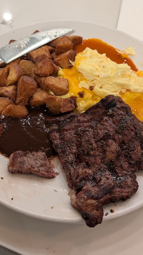 Sat at the counter and immediately greeted. I get the same thing every time, steak and eggs. Pretty expensive but blame the economy lol it was good. My server Marcia was wonderful, very sweet woman and it made my morning. Thank you to all of the staff for a wonderful experience and I highly recommend the spicy margarita! (Also, Molly wasn't my server but she was very sweet ❤️)