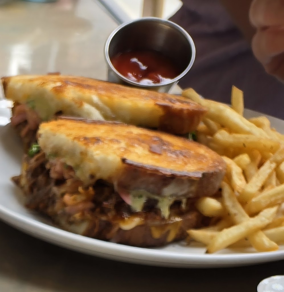 Meh, thats all I got. I thought the space was absolutely beautiful and everything on the menu sounded so freaking delicious I couldn't decide what to get. I was traveling through and I knew I wanted to get my hands on some Wisconsin cheese so I picked the most obvious choice.. the grilled cheese sandwich. I was picturing something that would have an insta worthy cheese pull and ended up with... wait, lets us what I learned in therapy.. "What I feel like" was a heat lamp slice of mid grade cheese and bread so greasy my fingers needed a bath afterwards. Was the sandwich good? not at all. Was it bad? not exactly.