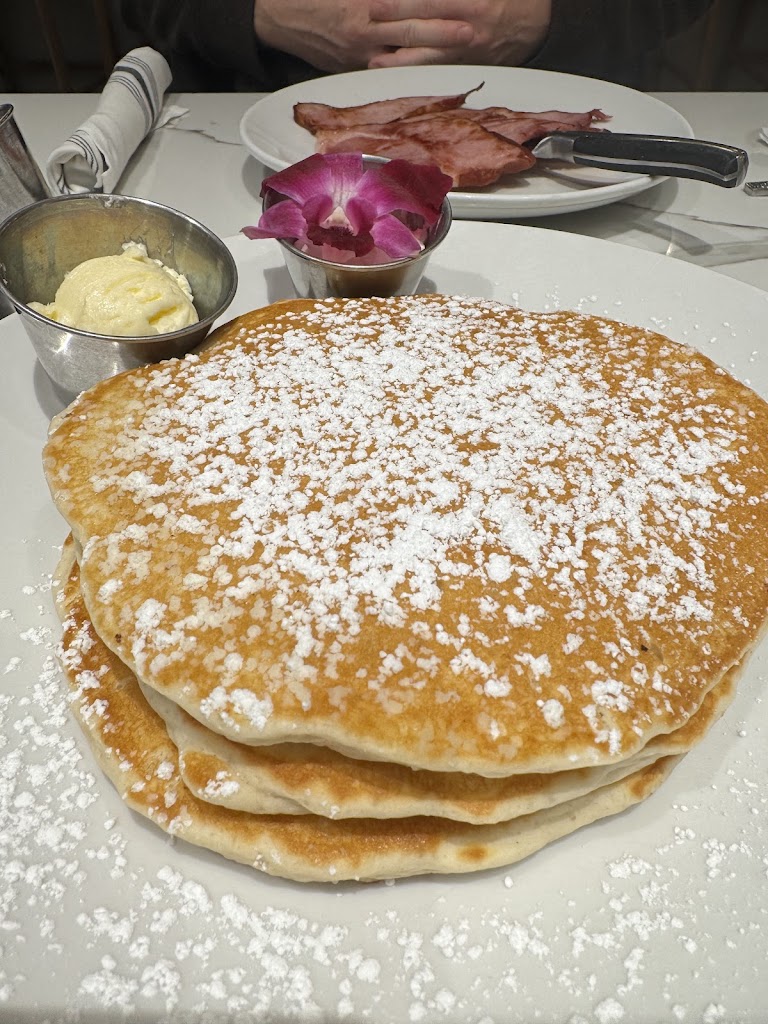 Place was cute , server was very attentive. I prefer thinner bacon kinda felt like I was eating pork rinds. Also wished the chocolate chips were distributed a Little better in my pancake. 80% of all the chocolate was in the top pancake and the bottom two were just lackluster. Might give them another try.
