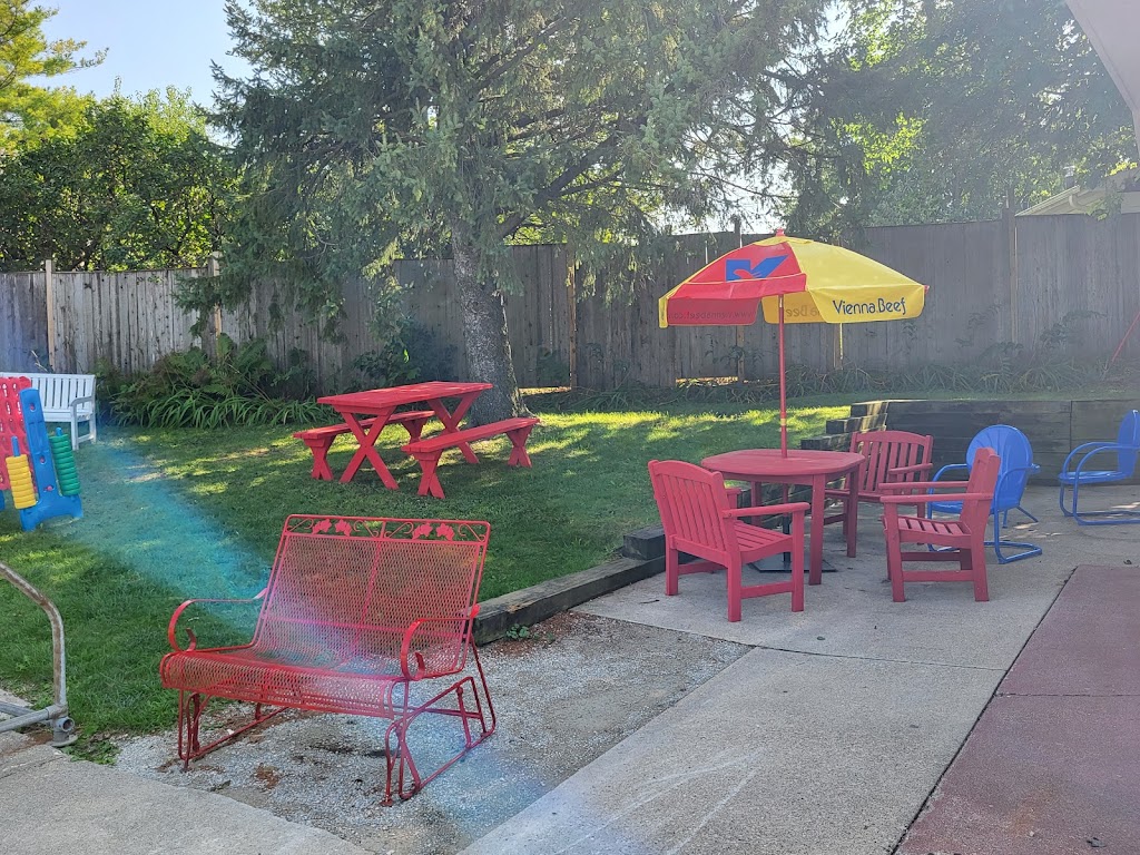 I love the feel of this. Comfy ol fashioned metal chairs with thick cushions. The girls that waited on us were so sweet too. We will return❤️❤️