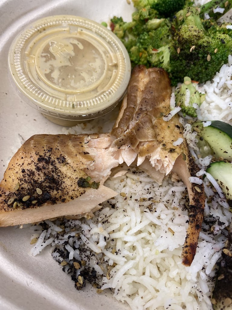 I ordered delivery having never eaten here in hopes a healthy lunch option. What I received was disgusting. A small piece of overcooked, fishy salmon that looks like it was microwaved. The presentation is horrible. I’m letting the fact that it’s cold go considering it was delivered from 6 miles away. This is not what I would expect from a $29 lunch that will go directly into the trash.