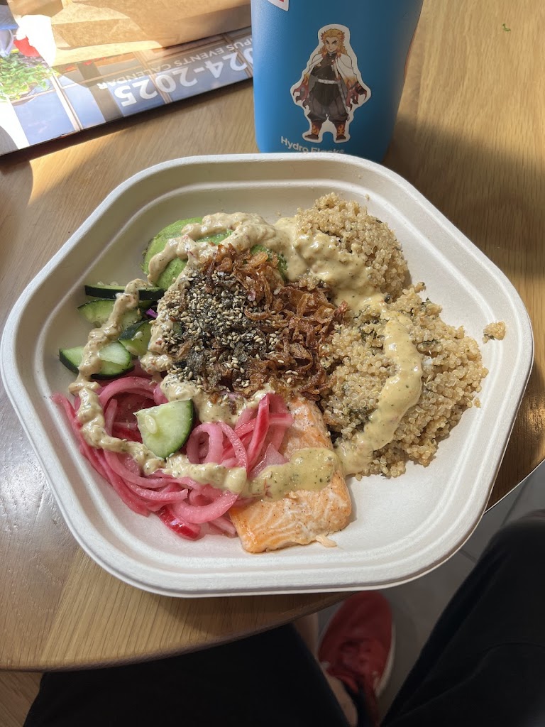Loved this place! I got the miso glazed salmon bowl. I got it with quinoa. My wife got the harvest bowl and my daughter got the shroom bowl. Service was quick and efficient. The vibes were good too!
