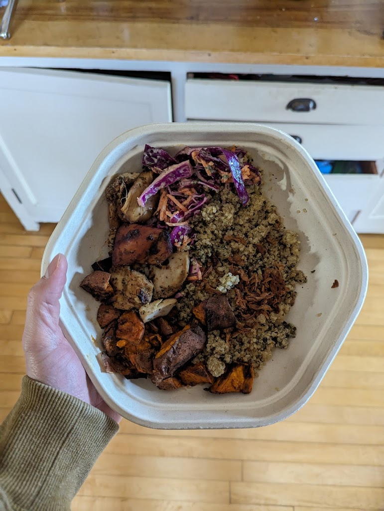 Fresh salads, plates + grain bowls available for pickup and delivery every day, made in-house from scratch, using whole produce delivered that morning.